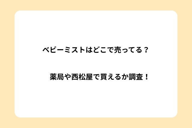 ベビーミストどこで売ってる?についてご紹介します。 こんなお悩みはありませんか? ベビーミストがどこで売っているかわからない 薬局やドラッグストアで手に入るか知りたい 西松屋やマツキヨにあるのか調べたい ベビーミストがどこで手に入るのか気にな... -