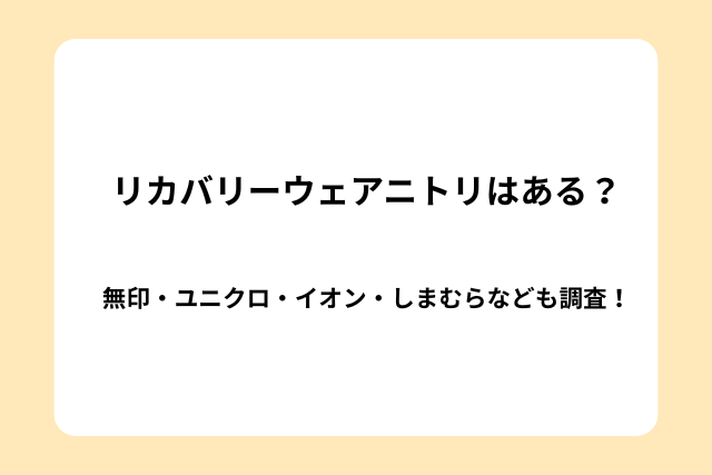 - ニトリ・無印・ユニクロにはリカバリーウェアはない